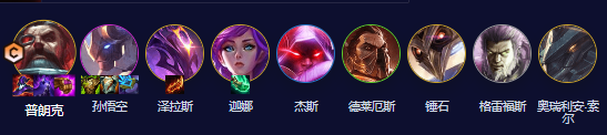 普朗克、孙悟空、泽拉斯、迦娜、杰斯、德莱厄斯、锤石、格雷福斯、奥瑞利安·索尔