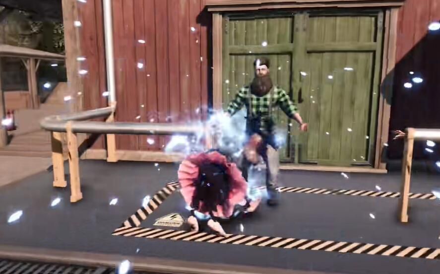 我们只需要一直吹脏东西即可,因为不停有人往里面丢东西所以得多弄一会儿,嫌麻烦就去旁边一个大脸招牌下面拿一个恐怖电影道具,可以控制那些路人不来捣乱。