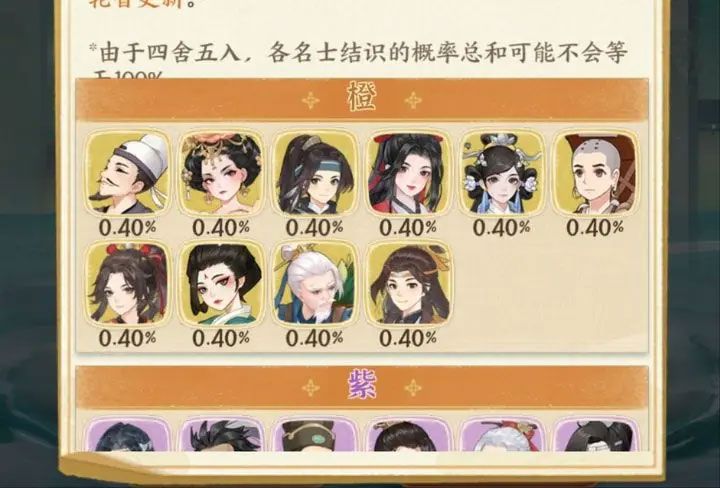 名士可通过使用经籍( 10000经验)、诗稿( 2000经验)、蒙书( 500经验)进行升级,升级会获得属性加成。这些经验道具可以通过幻境争锋(阅历欲渊)、日常/支线任务、新手活动等渠道获取。