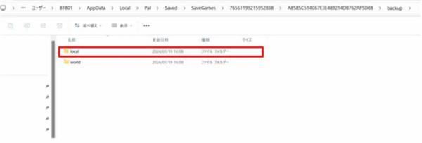 3、在步骤一的路径下,找到【backup】-【local】文件下,找到与存档数据时间相符的文件夹;