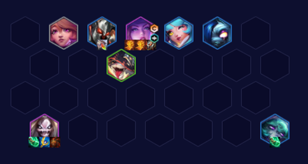 阵容角色:阿卡丽、卡尔萨斯、莫德凯撒、薇古丝、莉莉娅、妮蔻、阿木木、纳尔