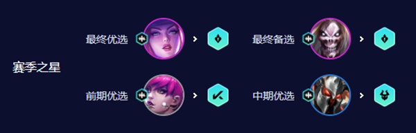 前期尽量用强势棋子与羁绊打工,保证打工棋子2星,进而稳定血量健康。