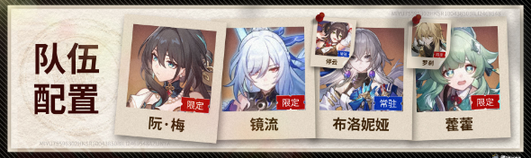 队伍推荐1:阮梅 镜流 布洛妮娅/停云 藿藿/罗刹