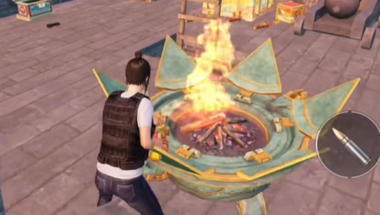 4、滑翔到龙头的位置,上面有一个启动器,使用加特林发射子弹十秒钟即可骑龙了。
