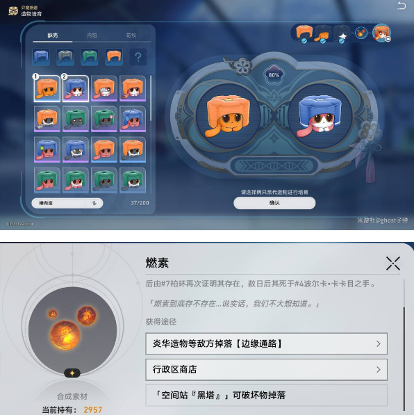 接着我们放入橙壳·橙馅·的造物,和星星花纹·的造物培育,在出现特殊突变时放入燃素即可。