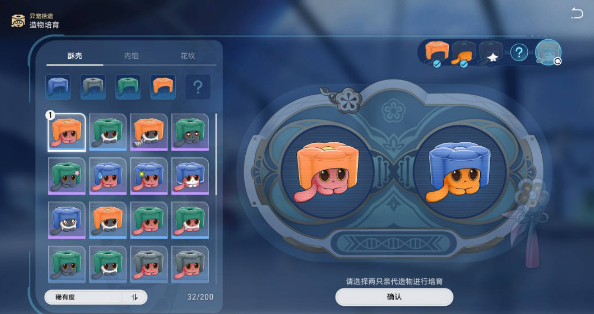 由于我们没有橙壳·橙馅·的造物,所以需要先将橙壳的造物,和橙馅的造物培育,培育出橙壳·橙馅·的造物。