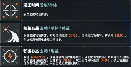 莫辛纳甘需要**使用技能,保持积极心态以获取增益,从而提高电导伤害。为了触发她的协击,需要队友的帮助来打破稳定状态。在战斗中需要不断打出协击和麻痹效果,以确保输出循环。