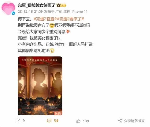 《完蛋!我被**包围了2》的公布也让我们看到了游戏行业对于IP的重视和保护。