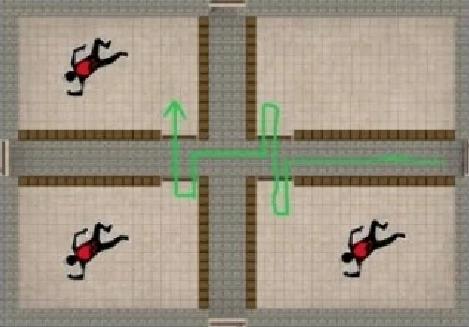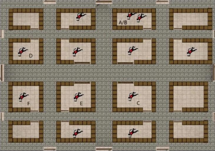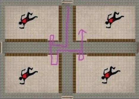 而线索中提到的每扇门只能进去一个人,由此我们可以推断出,东西侧至少各有两扇门,南北侧至少各有一扇门。