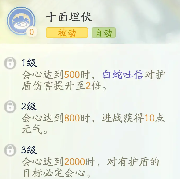 3、被动-十面埋伏:根据杨康的会心数值来提升伤害等效果。