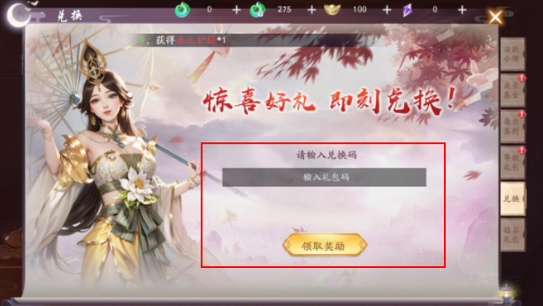 3.我们在进入到兑换界面数日争取的兑换码,点击领取就可以了,之后我们在前往信件里面查收奖励;