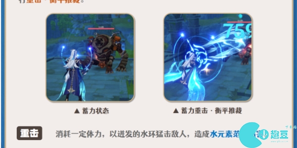 元素爆发分为两段攻击,**段是施放攻击、第二段是降下2道水瀑,造成弱水元素伤害,二者共享常规附着规则。