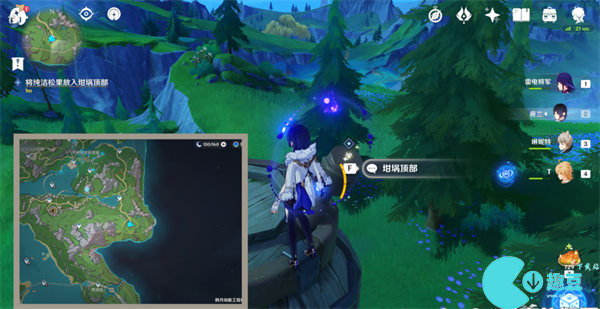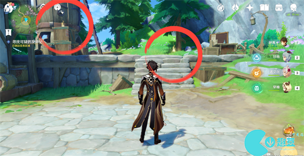 4、切出水系角色,不断攻击水元素装置,点亮水元素装置后,返回小屋对话。