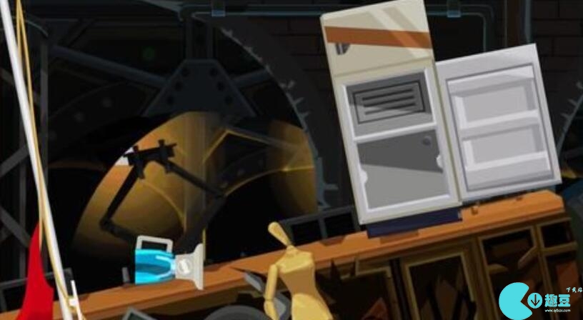 9、玩家再借助折叠床可以迅速的来到右上角游铁球的位置,打开冰箱能够找到搅拌机。