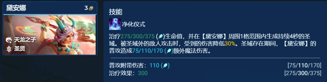 通常我们主坦选择黛安娜。其技能不仅能给自身恢复生命值,大幅度增加自身的续航能力,还能创造一个圣域4秒内敌人攻击圣域内的棋子会有30%减伤,黛安娜本身双抗55,在圣域持续的时候坦度非常足。另外在圣域持续的时候,黛安娜的普攻还能造成一个额外魔法伤害,小幅度提升阵容输出强度。