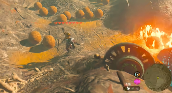 4、在使用火烧风滚草后是,是可以在烧的位置上找到这些烤熟的果实,当然事后姿姆琪因为玩家清理掉风滚草后,还会给玩家王族盾。