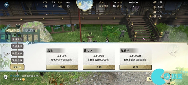 4、每天赢在大宋刷完5个时辰之后,先去碰运气,前期钱不多就选第二个选项,容易触发,钱多了再选第三个选项。