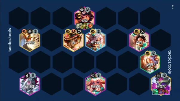安妮带石像鬼石板甲单顶前排,主要起到聚怪的作用,其他坦克直接放在第二排,猴子、洛跟对面住C同侧站位,后排主C灵活站位即可,阿兹尔尽量放在最左/右角落防止被秒。