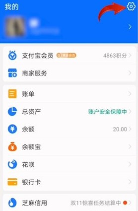 **步、首先打开【支付宝】客户端,然后点击右下角【我的】,点击右上角【设置】图标。