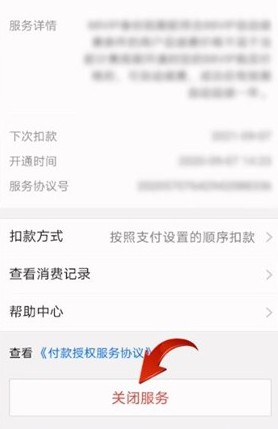 第三步、再点击要取消自动续费的服务,**点击【关闭服务】-【确认解除】即可。