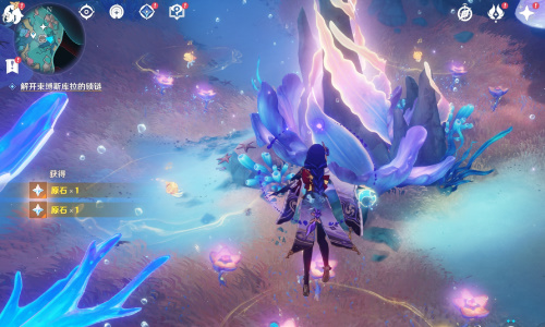 6、我们利用乐章,靠近封印石柱,长按E即可破除**道封印。