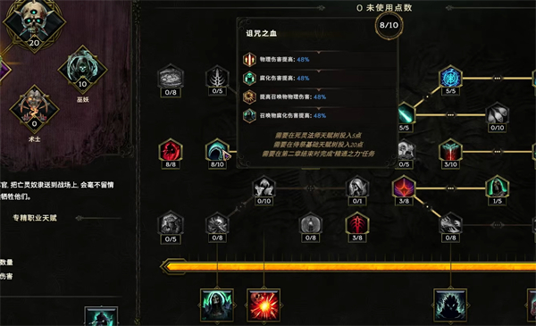 至于死灵法师右侧天赋树,5点的白骨之河,6点的被弃者之刃,至于异端和亡灵仪式直接拉满10点,这能为亡灵法师提供很多战力加成。