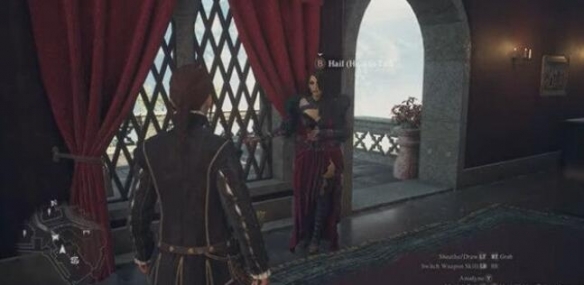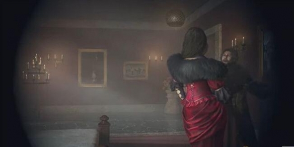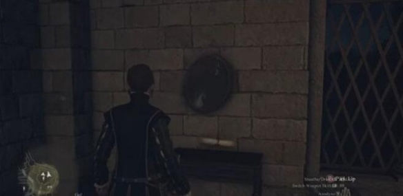 3.再次与她交谈,升级剧情,第二天可以再次来到这里,将发现她正在接待贵宾。从她昨天所站位置对面的墙上,可以找到一个猫眼机关(一副挂相),透过这个猫眼,观看剧情。