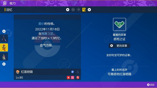 7. 出证后,会自动给宝可梦戴上,不需要点进去更改奖章处手动佩戴。因此查看是否出证只需要查看宝可梦能力的第三页处即可。
