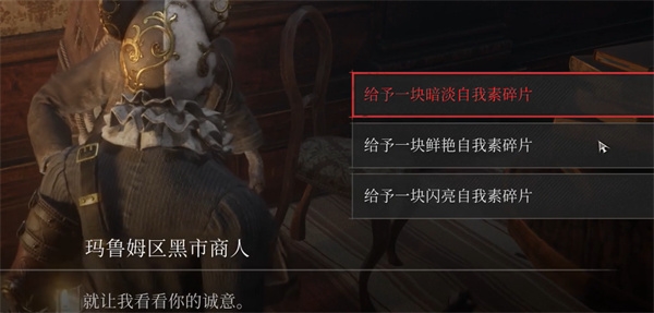 2、这里的黑市商人会向我们所要贿赂,我们需要给他。贿赂为三种自我素碎片中的一种。