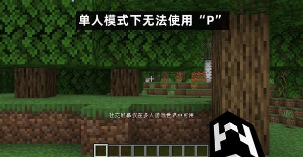 JAVA版中,多人模式按下P键即可开启社交屏幕。如果你尝试在单人模式中开启社交屏幕,会返回一个提示:“社交屏幕仅在多人游戏世界中可用”。