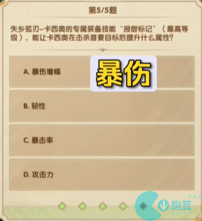 5、失乡孤刃-卡西奥的专展装备技能“报偿标记”《**** 》,能让卡西肉在击杀首要目标后提升什么属性?