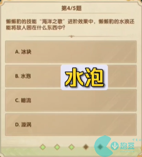 4、懒懒豹的技 “海洋之歌”进阶效果中,懒懒酌的水浪还能将敌人困在什么东西中?