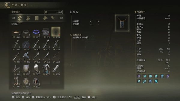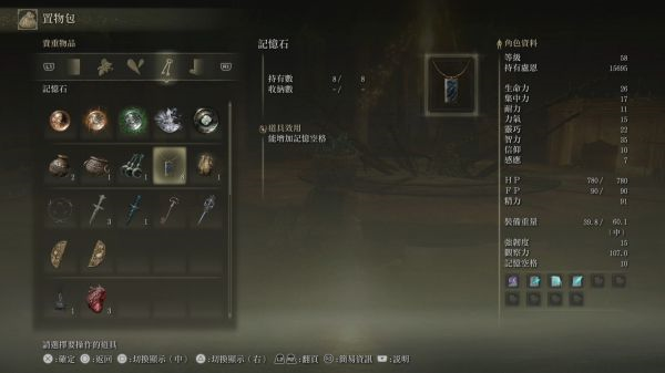 记忆石是可以让你多放魔法和祷告的道具,初始是两格,如果8个记忆石都拿到就可以塞到10格魔法。