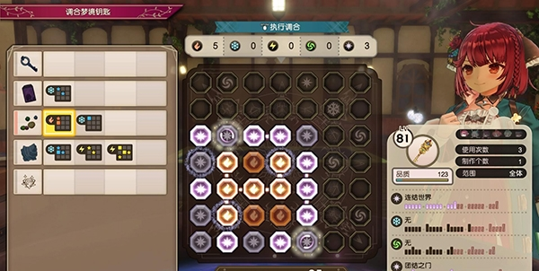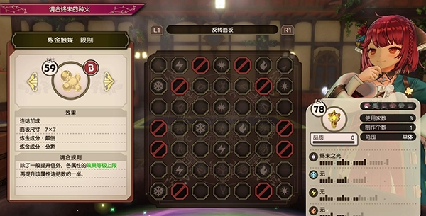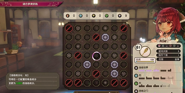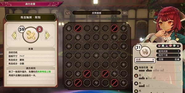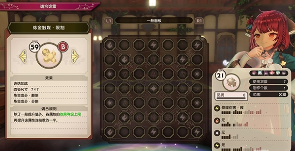 本作炼金系统基本原理非常简单,但是在游戏中期会加入媒介,通过强化炼金面板会变成7*7的格数。