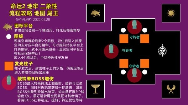 技巧:可以找到现实位面通往四周平台的矮墙背面上有图标的地方,提前站好再打铃吗,就不用在梦魇位面苦苦寻找了