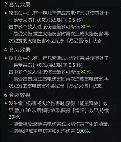 雷火套:适用于技能命中还不太准,有时候BOSS机制,丢个小炮塔在那边都可以有很高的输出,就算没蓝,普攻都能触发套装效果打伤害,非常轻松的一套。