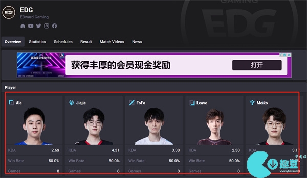 3、进入edg战队主界面就可以查看到所有的选手信息了。