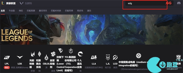 1、首先进入opgg主界面(官网地址:https://esports.op.gg/),然后我们点击右侧的搜索框,搜索edg。