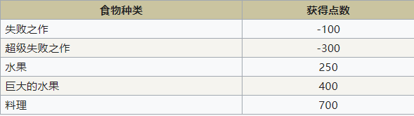 食物种类和获得点数一览: