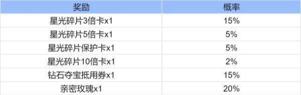 方法二:在【奇迹时刻】活动的兑换商店中,可兑换“奇迹道具礼包”,打开后可随机获得以下奖励之一:星光碎片3倍卡、5倍卡、10倍卡、保护卡。