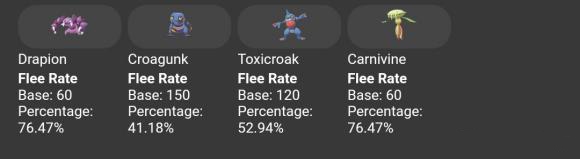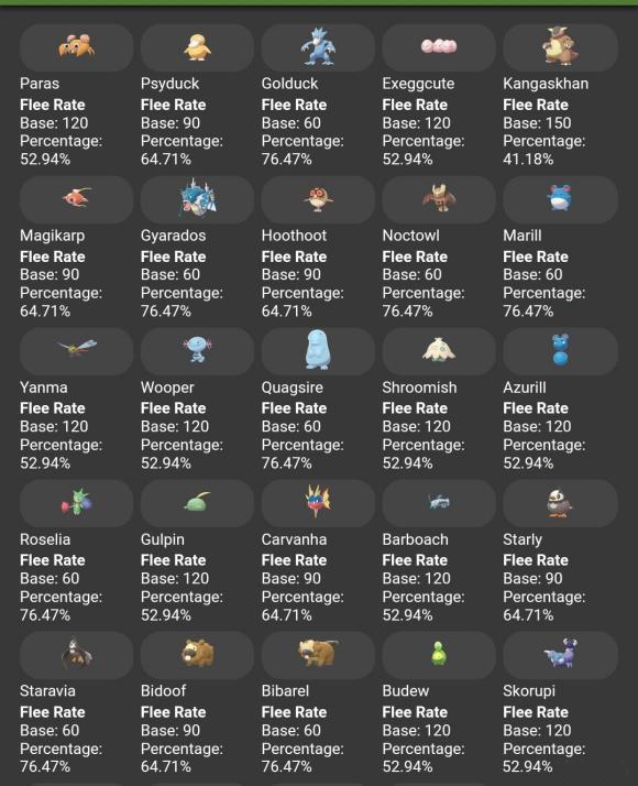 大湿原每种出现的pm都有自己固定的逃跑几率,与**宝可梦遭遇后,只能有4个操作选项,直接扔狩猎球,扔泥巴,扔石块,逃跑,其中扔泥巴会**逃脱几率,但是会**捕捉率,扔石块会增加捕捉率,但是会增加逃脱率,大部分**进化型基础逃脱率都比较高,比如暴鲤龙,**蝎这类,也有像尖牙刺笼这类没有进化型的逃脱率也较高