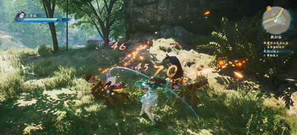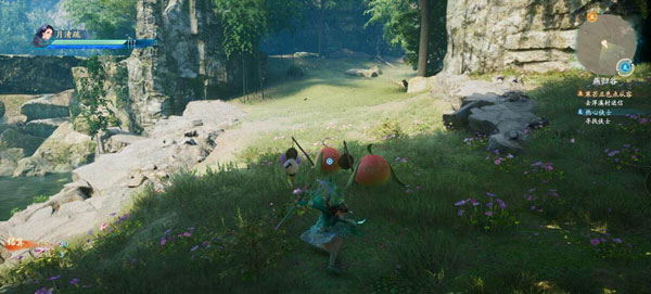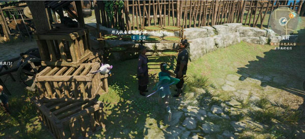 与两人对话中得知他们讨论一个主动帮村民除妖怪的热心大侠,去除妖很久没回来了,清疏决定去结界外找一找他,前往任务目标地点后。