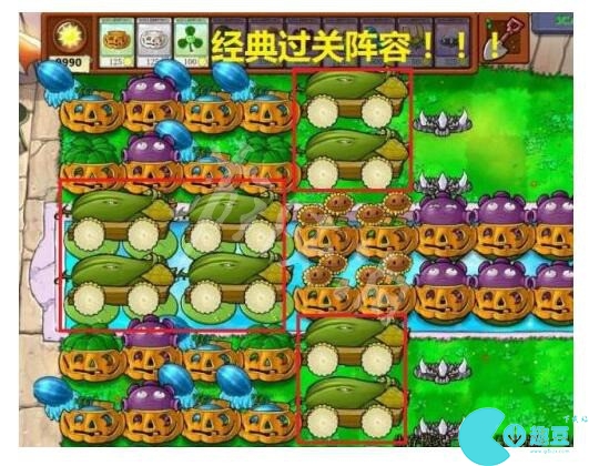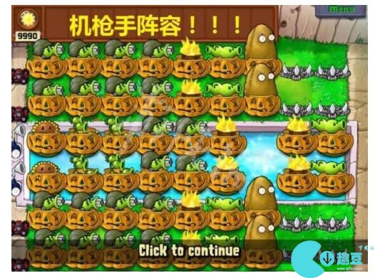评价:利用高坚果和南瓜来保卫前线,后排方式机枪豌豆再利用火炬进行强化能够对敌人造成灼**害,**豌豆能够对后方敌人进行打击。