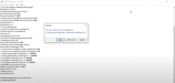 然后打开“ GameUserSettings.ini”。