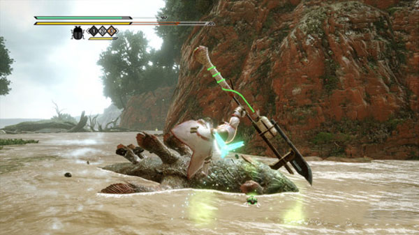 跳向空中,猛踢猎物,可在不落地的情况下尽情发动攻势。
