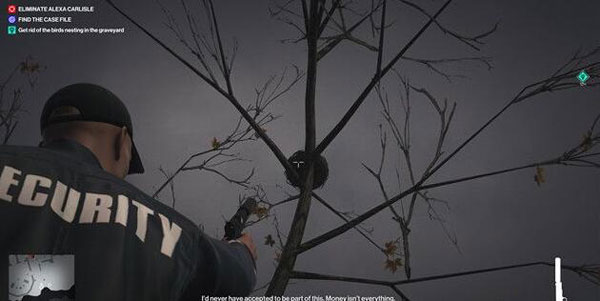 在亚历克莎·卡莱尔观望着自己的墓地时,会支开旁边的保镖,你可以利用这个机会将她推进墓地。
