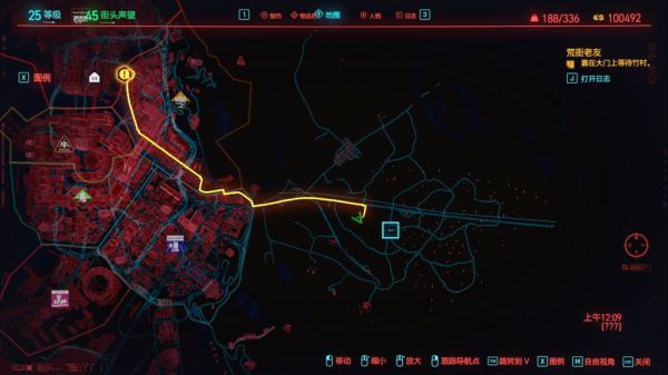 如图位置有一个NCPD任务(有组织犯罪活动,蓝色骷髅头图标),过去以后是个夜游鬼的小帐篷营地,有一顶帐篷里面有猫粮可以捡,是喂猫用的,别直接R下肚了。