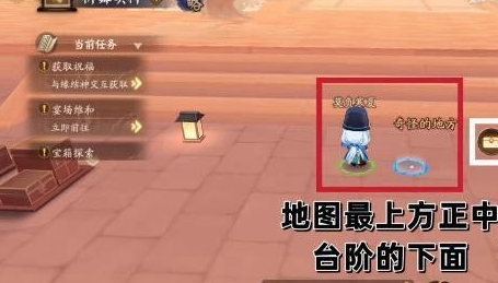 3、第三个,地图**正上方往前走我们可以看到台阶下面的蓝色光圈;