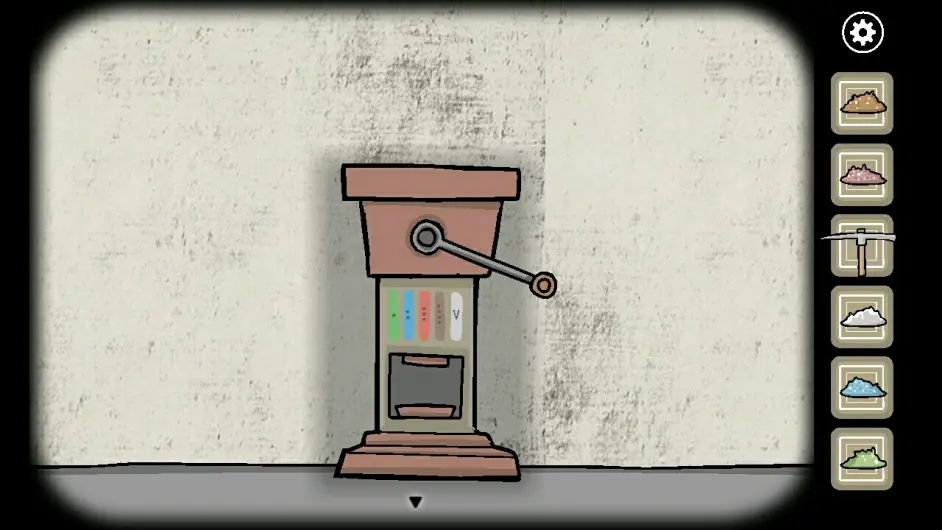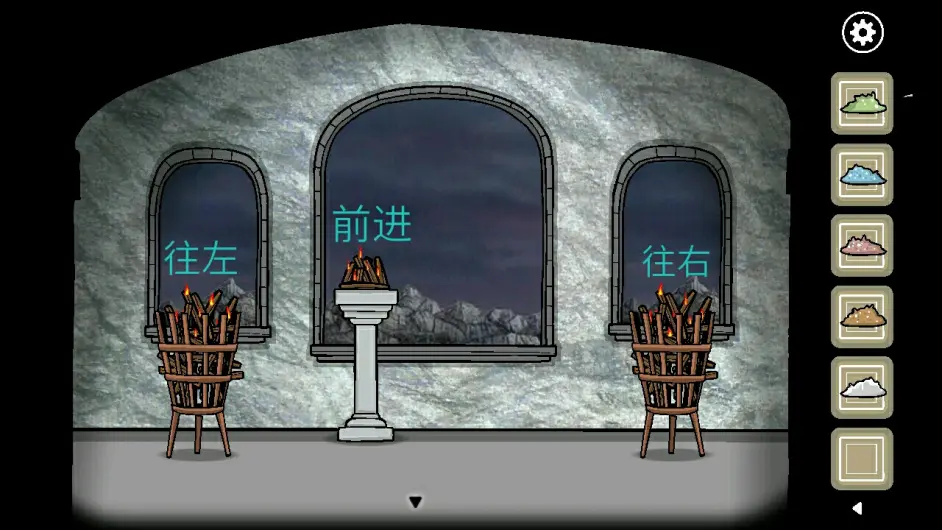 4、回到小屋,使用机器将树皮、红月石等磨成粉末,记住颜色的顺序为绿蓝红棕白。接着来到暗室门口,根据顺序将不同颜色的粉末投入火堆。