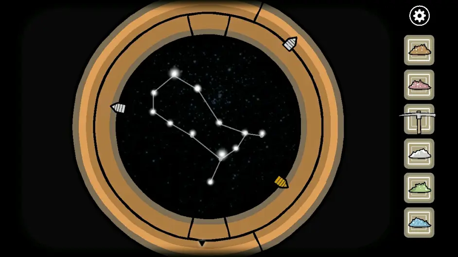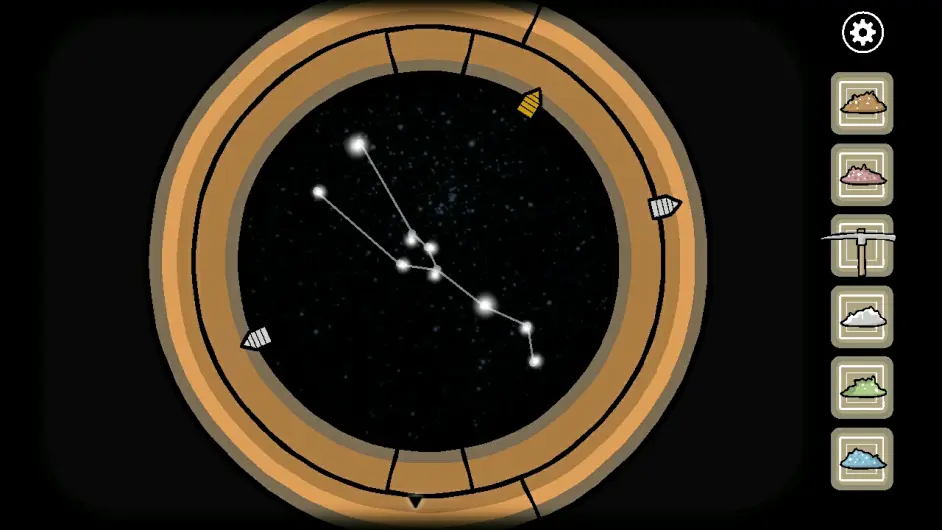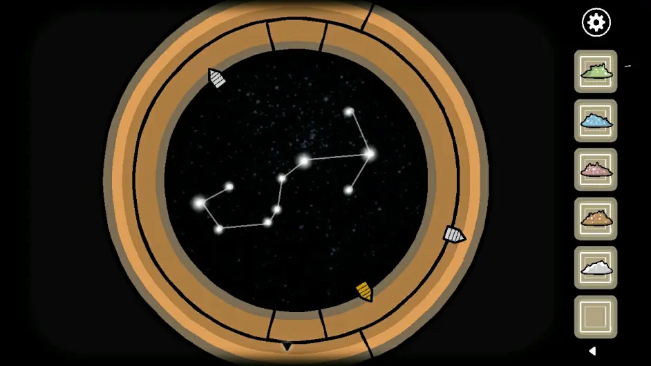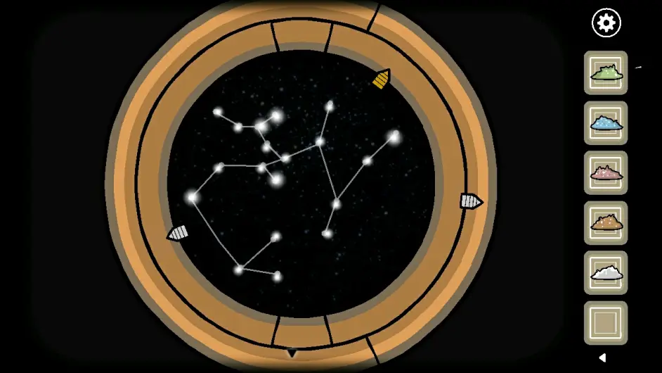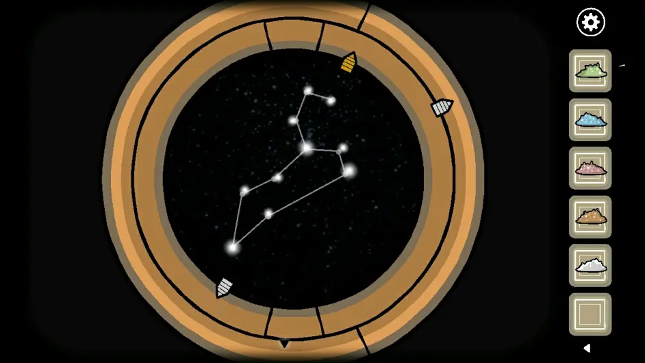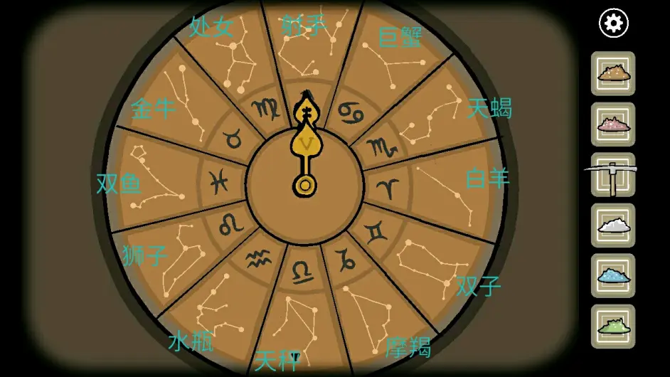 8、点击旁边的望远镜,调整位置使光点和幸运重合。完成后观察星座旁边光点数量获得提示:双子、射手、金牛、狮子、天蝎。